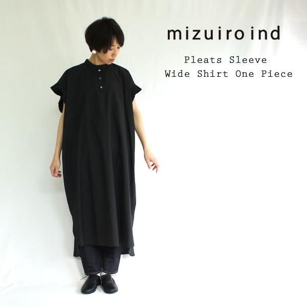 Mizuiro Ind ミズイロインド プリーツスリーブワイドシャツワンピース