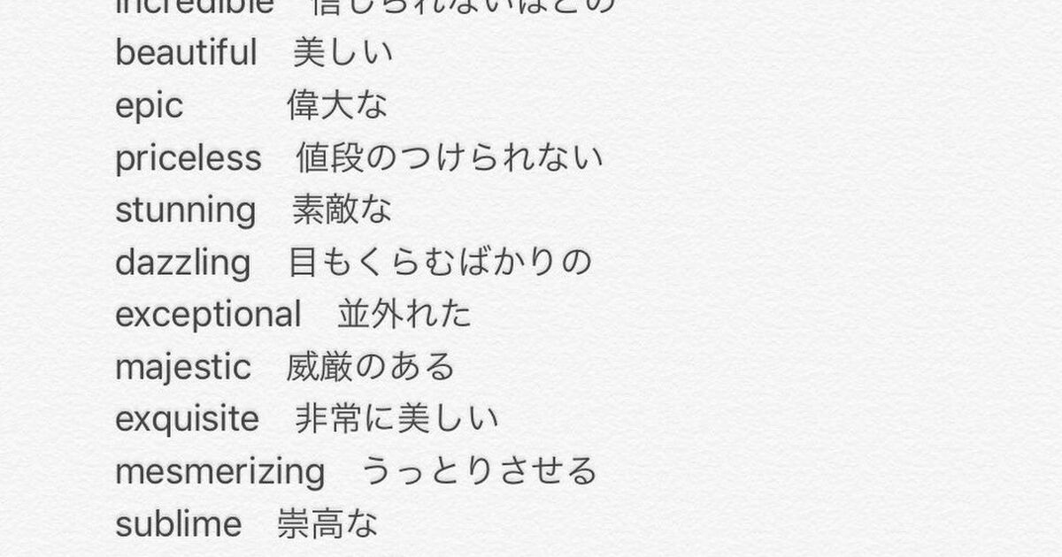英語には「最高だ」と表現する言い方も沢山あります。文脈や評価の対象に応じて、あるいは「最高!」という感動のニュアンスに応じて、表現を選んでみましょう。 代表的な英語表現 awesome (素晴らしい、めちゃくちゃスゴい) superb(とびっきり素敵だ、圧巻だ) feeling great (最高に気分が